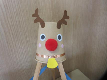 おはなしの後は紙コップ製作でトナカイさんに変身!